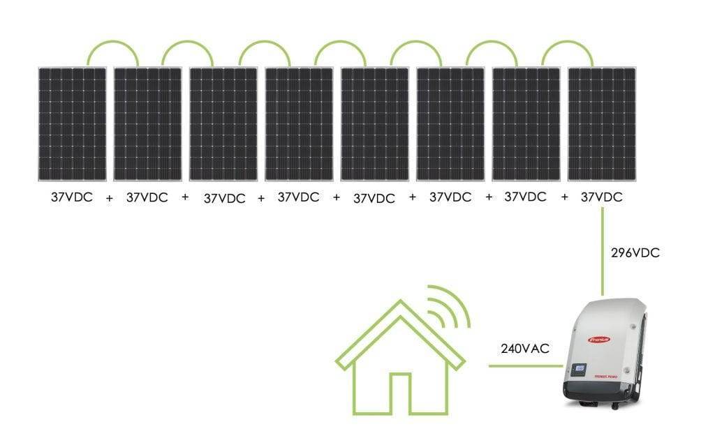 Klasik dizi inverter bağlantısında her bir panelin DC gerilimi toplanarak dizi gerilimi oluşurken, mikro inverterli bağlantıda her bir panel müstakil olarak bir mikro inverter ile 230 V AC gerilim çıkışı vermekte ve diğer panellerin çıkışları da ortak AC barada birleşmektedir. Mikro inverterler çalışma yapıları gereği birbirleriyle sıfır geçiş noktasında senkron olabilmektedirler.