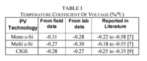 Yukarıdaki tabloya göre Thin Film modüllere ait Voc sıcaklık katsayısının monokristal ve polikristal panellere göre daha düşük olduğu görülmektedir. Bu farklılık Thin Film paneli oluşturan yarıiletken bölgenin yapısından kaynaklanmaktadır.