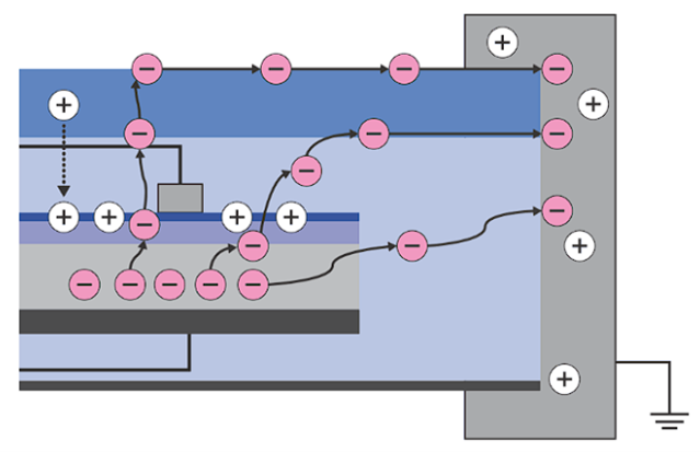PV modüllerin topraklanmış kenar çerçeveleri ile modül ön camı da temas halindedir. Modül camını pratikte her ne kadar yalıtkan olarak kabul etsek bile, ön camda biriken kirlenme ve nemlilik fotovoltaik hücreler ile modül cam yüzeyi arasında potansiyel farkını meydana getirecektir. Oluşan bu yüksek elektrik potansiyel farkı iyonlaşma ve dolayısıyla elektronların yer değiştirmesine, başka bir deyişle sızıntı akımlarına sebep olacaktır.
